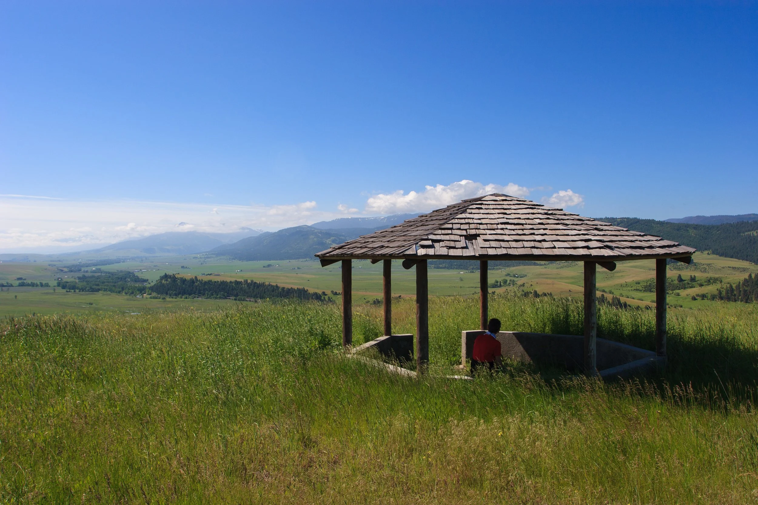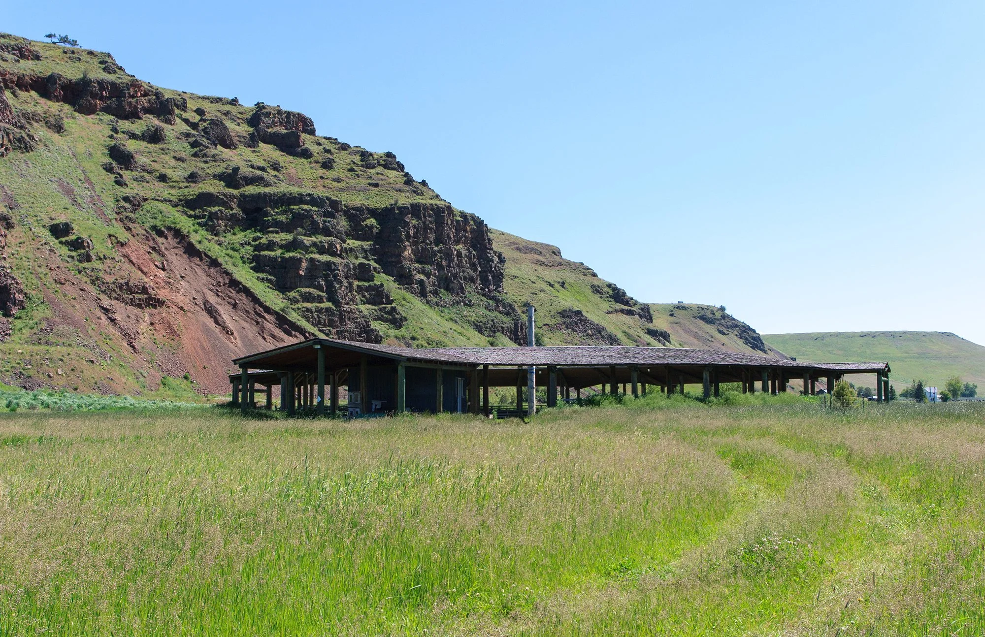 A circular exercise pen and six open air stalls (two horses per stall) are available during visits to the Wallowa or while traveling the Nimiipuu Trail. The surrounding unfenced area is available for grazing and the three mile loop trail is a nice nearby ride. Water is available at the pumphouse—please bring your own water bucket. Wheelbarrow & fork available for cleaning stalls. Local outfitters can be engaged to provide horses for groups.